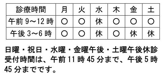 医院概要 平成27年8月1日開院尼崎市南塚口町3-8-15阪急神戸線塚口駅南東徒歩5分JR福知山線(東西線)塚口駅西徒歩6分 電話 06-6428-5252 診療時間 (診療受付は午前診11;45まで、午後診17:45まで)
